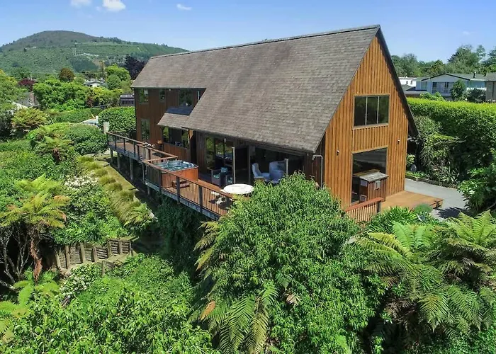从住所到罗托鲁阿中心大约4公里. 别墅毗邻彩虹原始生态园.